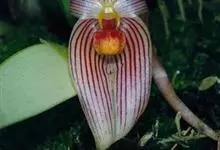 白花兜兰是兰科,兜兰属地生或半附生植物,国家一级保护植物。叶基生;数枚至多枚,叶片带形、革质。花葶从叶丛中长出,花苞片非叶状;子房顶端常收狭成喙状;花大而艳丽,有种种色泽;中萼直立,花粉粉质或带粘性…全部>>
