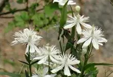 棉团铁线莲是毛茛科、铁线莲属多年生直立草本,高可达100多厘米。老枝圆柱形,叶片近革质绿色,单叶至复叶。裂片线状披针形,长椭圆状披针形至椭圆形,或线形,顶端锐尖或凸尖,两面或沿叶脉疏生长柔毛或近无毛,…全部>>