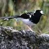 斑背燕尾是鹟科、燕尾属中型鸟类,体长24-25厘米。额至头顶前部白色,其余头、颏、喉、胸黑色,后颈有一白领,背黑色具圆形白色斑点,腰白色,两翅黑色具白色翅斑,尾呈深叉状,黑色、具白色端斑。…全部>>