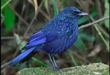 紫啸鸫是雀形目鹟科啸鸫属鸟类,又称黑雀儿,山鸣鸡、乌精。成鸟眼先及颏绒黑色;前额、头顶至背及肩羽和颈侧呈深紫蓝色,羽端具较密集的亮蓝色点斑;腰至尾上覆羽的深紫蓝色较暗而杂黑褐色,…全部>>