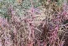 盐地碱蓬 Pall.)是苋科碱蓬属植物。一年生草本,高20-80厘米,绿色或紫红色。茎直立,圆柱状,黄褐色,有微条棱,无毛;分枝多集中于茎的上部,细瘦,开散或斜升。叶条形,半圆柱状。…全部>>