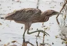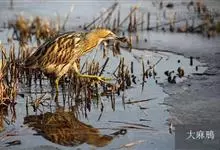大麻鳽,别名大水骆驼、蒲鸡、水母鸡、大麻鹭,是鸟纲潜鸟目潜鸟科麻鳽属的鸟类。雄性成鸟额、顶棕黑色,颊部棕黑且向后延伸,颈侧及后颈淡棕黄色并具暗褐色细横斑;上体黄褐色并具黑褐色纵纹;颏、喉棕白色,…全部>>