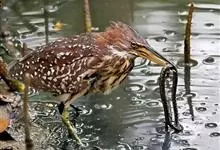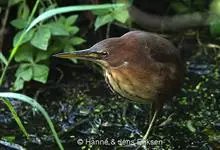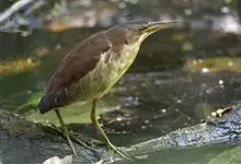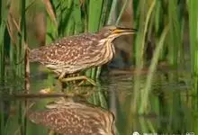 紫背苇鳽是鹭科、苇鳽属动物,为涉禽,体长约33厘米。头顶黑色,后头至尾上覆羽暗栗褐色;翅上覆羽橄榄黄色;下体浅棕黄色。多生活于水库和山脚边的稻田、芦苇丛、滩涂及沼泽草地,在西藏见于海拔2300米的农田,…全部>>