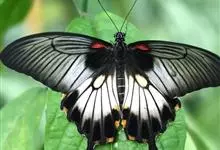 玉斑凤蝶Papilio helenus 别名白纹凤蝶,是凤蝶科凤蝶属美凤蝶亚属大型种类。雌雄同型;体翅皆黑色,后翅正面中室外有3个并列的白色斑,亚外缘有1列模糊的新月形红色斑,…全部>>
