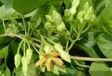 夜来香 Merr.)是夹竹桃科夜来香属柔弱藤状灌木;小枝被柔毛,黄绿色,老枝灰褐色,渐无毛,略具有皮孔。叶膜质,卵状长圆形至宽卵形,叶脉上被微毛。伞形状聚伞花序腋生,着花多达30朵;花芳香,…全部>>