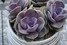 紫珍珠是景天科石莲花属的多年生肉质草本植物。植株中小型;叶片肉质,匙形,呈莲座状紧密排列;叶片粉紫色,叶缘呈粉白色,光照充足时颜色亮丽,不足时叶色会呈现深绿色或灰绿色,叶面光滑,被轻微白粉,…全部>>