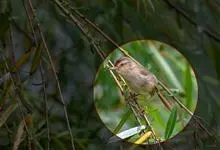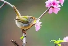 普通缝叶莺,是雀形目鹅科莺亚科缝叶莺属一种。体长10-14厘米,体重7-10克,雄鸟前额棕红,头顶至枕棕橄榄褐,上体橄榄绿染黄,飞羽及尾羽暗褐;繁殖期雄鸟的中央尾羽特形延长,下体淡皮黄白色。…全部>>