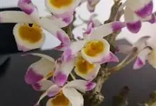 肿节石斛,是兰科石斛属多年生草本植物。肿节石斛茎斜立或下垂,肉质,圆柱形;叶纸质,长圆形;花序生于已落叶老茎上部,花白色,上部紫红色,有香气;花瓣宽长圆形,唇瓣白色,中部以下金黄色,上部紫红色,…全部>>