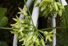 夜香树是茄科、夜香树属直立或近攀援状灌木。枝条细长而下垂。叶有短柄,叶片矩圆状卵形或矩圆状披针形,全缘,顶端渐尖,基部近圆形或宽楔形,两面秃净而发亮,有6-7对侧脉。伞房式聚伞花序,腋生或顶生,…全部>>