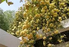 黄木香花 Rehd.)是蔷薇科、蔷薇属植物,为木香花的变型品种,攀缘小灌木,高可达6米。小叶3-5枚,稀7枚,小叶片椭圆形或长圆状披针形,先端急尖或稍钝,基部近圆形或宽楔形,边缘有紧贴细锯齿。花小型,…全部>>