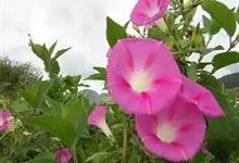 五爪金龙 Sweet),旋花科番薯属多年生缠绕草本植物。茎细长,有细棱;叶片为掌状;花冠紫红色、紫色或淡红色、偶有白色,漏斗状;蒴果近球形。花期5~12月。五爪金龙的叶子类似掌状,有5至7个裂痕,…全部>>