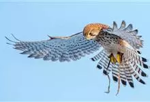 红隼:是隼科、隼属的小型猛禽之一。体重173-335克,体长305-360毫米。翅狭长而尖,尾亦较长,外形和共同爪隼非常相似。雄鸟头蓝灰色,背和翅上覆羽砖红色,具三角形黑斑;腰、尾上覆羽和尾羽蓝灰色,…全部>>