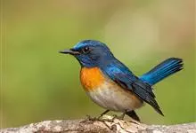 棕腹蓝仙鹟,Niltava vivida,鹟科仙鹟属的一种小型鸣禽,善在空中飞捕昆虫,中等体型18厘米,上体蓝,下体棕色,具黑色眼罩,胸橘黄渐变成臀部的皮黄色。国内分布于四川、云南、西藏和台湾等地。…全部>>