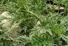 大籽蒿是菊科,蒿属一、二年生草本植物。主根垂直,狭纺锤形。茎单生,直立,高可达150厘米,分枝多;茎、枝被灰白色微柔毛。下部与中部叶片宽卵形或宽卵圆形,两面被微柔毛,裂片常再成不规则的羽状全裂或深裂,…全部>>