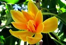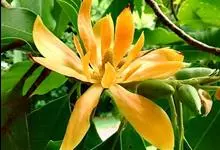 黄缅桂是木兰科、含笑属植物。常绿乔木,高达10余米;芽、嫩枝、嫩叶和叶柄均被淡黄色的平伏柔毛。叶薄革质,披针状卵形或披针状长椭圆形,下面稍被微柔毛。花黄色,极香,花被片15~20片,倒披针形,…全部>>
