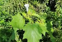 曼陀罗,茄科曼陀罗属一年生大型草本植物,全株光滑。有臭气;叶呈广卯形,边缘具不规则波状浅齿裂;花单生于枝杖间或叶腋,直立,有短梗;花萼是筒状裂片三角形,颜色为白色或淡紫色;果实为蒴果卵状,…全部>>