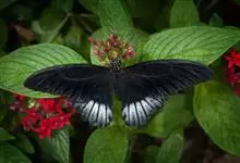 美凤蝶又名多型蓝凤蝶、大凤蝶,是鳞目凤蝶科凤蝶属动物。美凤蝶雄蝶无尾突,翅黑色,正面各翅室中部有深色条纹,分布蓝色鳞片,反面前后翅基部有红斑,后翅臀角有环状红斑。雌蝶具多型,前翅浅灰色,外缘和翅脉黑色,…全部>>