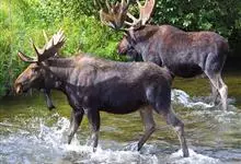 驼鹿:鹿科、驼鹿属动物。体长200-260厘米,肩高160-240厘米,体重400-700千克。肩部特别高耸,则又像骆驼背部的驼峰,因此得名。以雄性的掌形鹿角为特征。驼鹿共有8个亚种,…全部>>
