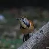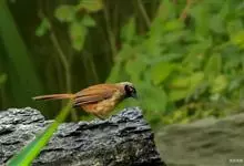大噪鹛:中型鸟类,体长32-36厘米。额至头顶黑褐色,背栗褐色满杂以白色斑点,斑点前缘或四周还围有黑色。初级覆羽、大覆羽和初级飞羽具白色端斑。尾特长,均具黑色亚端斑和白色端斑。颏、喉棕褐色,…全部>>