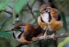 黑领噪鹛是雀形目画眉科噪鹛属鸟类,又名领笑鸫。头顶和上体褐色;眼先和眉纹白色;脸部具黑白相间的纵纹;颈侧至胸前具显著的黑色宽带,形成一半领环,其后方的颈背向下至两胁皆为棕黄色,其余下体白色;尾褐色,…全部>>