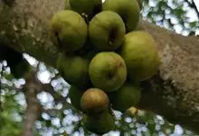 大果榕是桑科榕属的小乔木,株高可达10米;幼枝被柔毛;叶互生,宽卵状心形或近圆形;雄花无梗、匙形、花丝长,雌花生于雌株榕果内,子房白色;榕果簇生于树干基部或老茎短枝上、扁球形或陀螺形,…全部>>