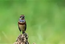 蓝点颏亦称“蓝喉歌鸲”,通称蓝靛颏儿。身体大小和麻雀相似,体长12-13厘米,体重17-18克。头部、上体主要为土褐色。眉纹白色。尾羽黑褐色,基部栗红色。颏部、喉部辉蓝色,下面有黑色横纹。下体白色。…全部>>
