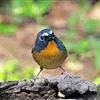 棕胸蓝姬鹟:属小型鸣禽,体长10-13厘米,体重6-10克,是一种体型很小的灰蓝及棕色鹟,雌雄羽色不同,雄鸟羽色艳丽,雌鸟羽色暗淡。雄鸟上体深蓝色,胸橙黄色,下腹灰白色。亚成鸟具褐色斑驳。…全部>>