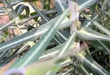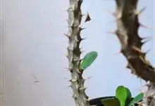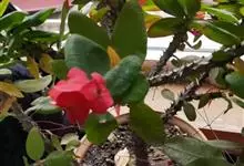 虎刺梅:别称铁海棠,是蔓生灌木植物。茎多分枝,长60-100厘米,直径5-10毫米,具纵棱,密生硬而尖的锥状刺,刺长1-1.5厘米,直径0.5-1.0 毫米,常呈3-5列排列于棱脊上,呈旋转。叶互生…全部>>