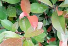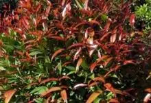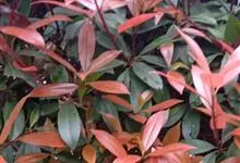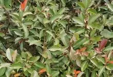 红叶石楠 是蔷薇科,石楠属杂交种,为常绿小乔木或灌木,乔木高可达5米、灌木高可达2米。叶片革质,长圆形至倒卵状、披针形,叶端渐尖,叶基楔形,叶缘有带腺的锯齿,花多而密,复伞房花序,花白色,梨果黄红色,…全部>>