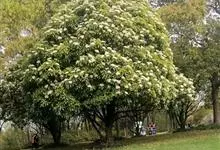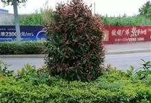 石楠 Kalkman),是蔷薇科石楠属的常绿乔木,高5~12米,株型紧凑,树冠圆球形。树枝为褐灰色;鳞片为褐色,没有毛;叶片革质,长椭圆至侧卵状椭圆形,有锯齿,新叶红色光亮。复伞房花序,白色小花,…全部>>