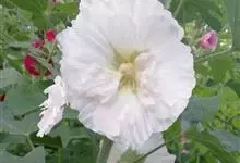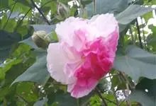 木芙蓉,锦葵科木槿属落叶灌木或小乔木。小枝上有细绒毛;叶片为卵状心形,托叶为披针形,常早落;花单生,花萼为钟形,花冠初为白色或淡红色,后逐渐变为深红色;果实为扁球形,有淡黄色的毛附着。花期8到10月。…全部>>