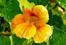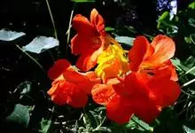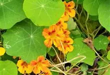 旱金莲是旱金莲科旱金莲属蔓生一年生草本植物。叶互生,叶柄向上扭曲,盾状,叶圆形,具波状浅缺刻,下面疏被毛或有乳点;花黄、紫、桔红或杂色,花托杯状,花瓣为圆形,边缘具缺刻;果实为扁球形;花果期6-10月,…全部>>