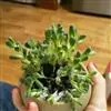 筒叶花月,是景天科青锁龙属的多年生草本植物。植株多分株,灌木状,茎较粗壮,圆柱形,表皮灰褐色;叶片肉质,互生,呈圆筒状,簇生于茎或分枝顶端,叶端呈斜截形,截面为椭圆形;花呈星状,淡白色;花期秋季。…全部>>