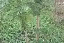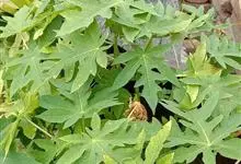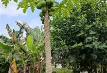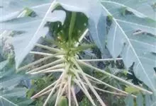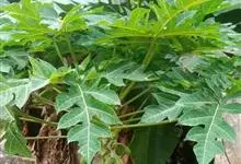 番木瓜,番木瓜科番木瓜属的常绿软木质小乔木,高达10米,具有乳汁;茎不分枝或有时于损伤处分枝;叶大且聚生于茎顶,近似盾形,叶柄中空;花单性或两性,有些品种雄株偶尔生两性花或雌花,…全部>>
