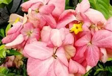 粉纸扇,茜草科玉叶金花属植物,半常绿灌木,株高1~3 m。叶对生,长椭圆形,顶端浙尖,基部楔形,全缘。…全部>>