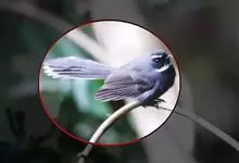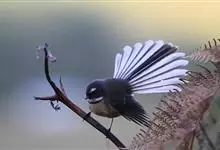 白眉扇尾鹟:体长17厘米,是一种中等体型的灰色扇尾鹟。色彩独特。宽宽的眉纹及前额白色,尾有白色宽边。髭纹白色,与黑色的脸及喉成对比;尾呈扇形,4对中央尾羽黑褐色,邻近两对具宽的白色端斑,最外侧两对白…全部>>
