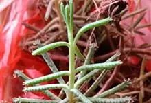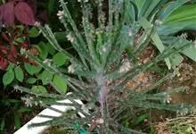 棒叶落地生根是景天科、落地生根属植物。茎直立、粉褐色。叶圆棒形,上表面有沟、粉色,有红褐斑。叶片交互对生,交叉排列成十字形。叶端锯齿上长有很小的幼株、落地后即可生根成活。原产非洲马达加斯加。…全部>>