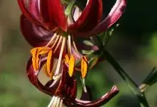 垂花百合是百合科百合属植物。鳞茎矩圆形或卵圆形,高4厘米,直径约4厘米;鳞片披针形或卵形,白色。茎高约65厘米,无毛。叶细条形。总状花序有花1-6朵;苞片叶状,条形,长约2厘米,顶端不加厚;子房圆柱形,…全部>>