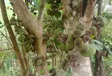 大果榕是桑科榕属的小乔木,株高可达10米;幼枝被柔毛;叶互生,宽卵状心形或近圆形;雄花无梗、匙形、花丝长,雌花生于雌株榕果内,子房白色;榕果簇生于树干基部或老茎短枝上、扁球形或陀螺形,…全部>>