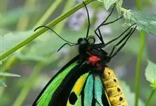 亚历山大女皇鸟翼凤蝶,又称大鸟翼蝶,是鳞翅目凤蝶科鸟翼蝶属蝴蝶;翅膀圆阔、褐色,雌性翅膀上会点缀着耀眼的白色斑纹;雄性翅膀上则闪耀着红蓝色的光泽。亚历山大女皇鸟翼凤蝶幼时很黑,身上长有红色的结节,…全部>>