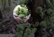 大果榕是桑科榕属的小乔木,株高可达10米;幼枝被柔毛;叶互生,宽卵状心形或近圆形;雄花无梗、匙形、花丝长,雌花生于雌株榕果内,子房白色;榕果簇生于树干基部或老茎短枝上、扁球形或陀螺形,…全部>>