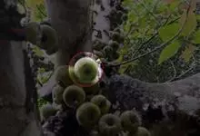 大果榕是桑科榕属的小乔木,株高可达10米;幼枝被柔毛;叶互生,宽卵状心形或近圆形;雄花无梗、匙形、花丝长,雌花生于雌株榕果内,子房白色;榕果簇生于树干基部或老茎短枝上、扁球形或陀螺形,…全部>>