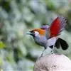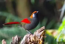 赤尾噪鹛中型鸟类,体长24~28厘米。头顶至后颈红棕色,两翅和尾鲜红色,眼先、眉纹、颊、颏和喉黑色,眼后有一灰色块斑。其余上下体羽大都暗灰或橄榄灰色。特征极明显,特别是通过鲜红色的头顶、翅和尾。…全部>>