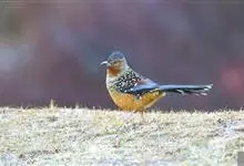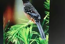 大噪鹛:中型鸟类,体长32-36厘米。额至头顶黑褐色,背栗褐色满杂以白色斑点,斑点前缘或四周还围有黑色。初级覆羽、大覆羽和初级飞羽具白色端斑。尾特长,均具黑色亚端斑和白色端斑。颏、喉棕褐色,…全部>>