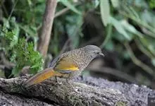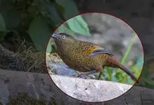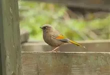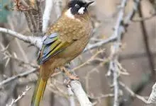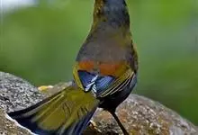 橙翅噪鹛:是噪鹛科、彩翼噪鹛属的中型鸟类,体长22-25厘米。头顶深葡萄灰色或沙褐色。上体灰橄榄褐色,外侧飞羽外翈蓝灰色、基部橙黄色,中央尾羽灰褐色,外侧尾羽外翈绿色而缘以橙黄色并具白色端斑。…全部>>