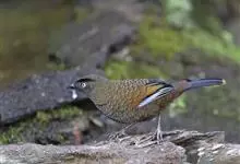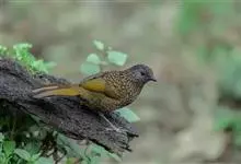 蓝翅噪鹛:噪鹛科、彩翼噪鹛属动物。中型鸟类,体长22-25厘米。上体棕橄榄褐色密被黑色鳞状斑,眼蓝白色,眼上有一长而宽阔的黑色眉纹,从眼先直到颈侧。下体棕褐色被黑色鳞状斑;尾上和尾上覆羽栗色,…全部>>