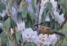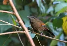 黑顶噪鹛:中型鸟类,体长24-26厘米。前额、脸、颏、喉黑色,头顶黑褐沾棕或深棕橄榄褐色,背栗褐或棕褐色,颧斑白色或棕红色,眼后缘和颈侧亦具白斑,飞羽金黄橄榄色而具蓝灰色尖端。下体淡棕褐色。…全部>>