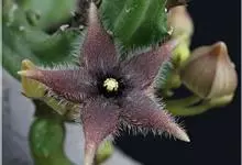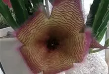 巨花犀角又称大豹皮花,是夹竹桃科犀角属的一种植物。茎粗,花大,边缘生长细毛。植株柱形多分枝呈丛生,柱形具4棱,棱缘具细小疣突。花大,五角星形黄色,并有横向棕褐色斑纹,似豹皮而得名。花期夏秋两季。…全部>>