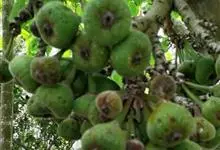 大果榕是桑科榕属的小乔木,株高可达10米;幼枝被柔毛;叶互生,宽卵状心形或近圆形;雄花无梗、匙形、花丝长,雌花生于雌株榕果内,子房白色;榕果簇生于树干基部或老茎短枝上、扁球形或陀螺形,…全部>>