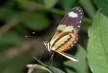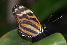 虎斑蝶,Danaus genutia ,是斑蝶属的一种,常见于湿地公园内。雄性虎斑蝶经常伏于吊裙草 上吸食汁液,以制造吸引异性的香气。虎斑蝶翅膀腹面鲜橙色,翅脉和翅边缘黑色,边缘上有两行小白点,…全部>>